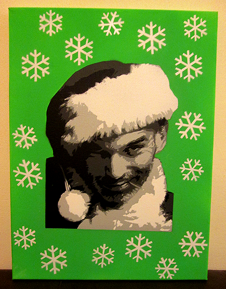 “Billy Bob Santa” Completed 6 Layer stencil + background snowflake stencils on 30cmx40cm Canvas sprayed green