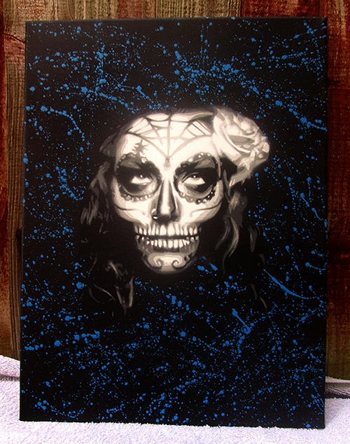 FOR SALE AFFORDABLE ART – Well the 1st edition of 5 sold out in under 48 hours. 2nd Edition TRUE BLUE BLOOD of ” A Beautiful Death”, EDITION OF 5 Now available. First come first served! I accept paypal, ship international and it’s FREE tracked signed delivery within the UK. 8 Layer hand cut stencil, canvas size 30cmx40cm. Any more questions