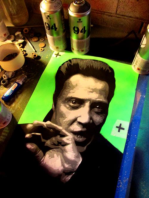 Still Keep Walken” – 6 hand cut stencil layers sprayed in grey scale, 30cmx40cm, edged in black finished with a semi gloss varnish – Available now email info@ripartist.com for more details